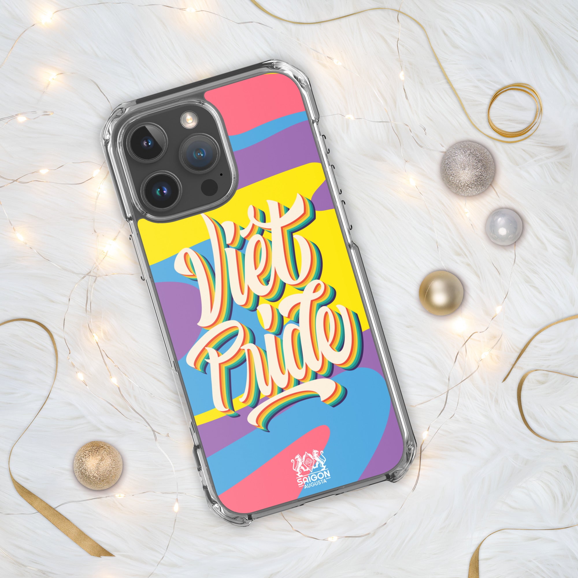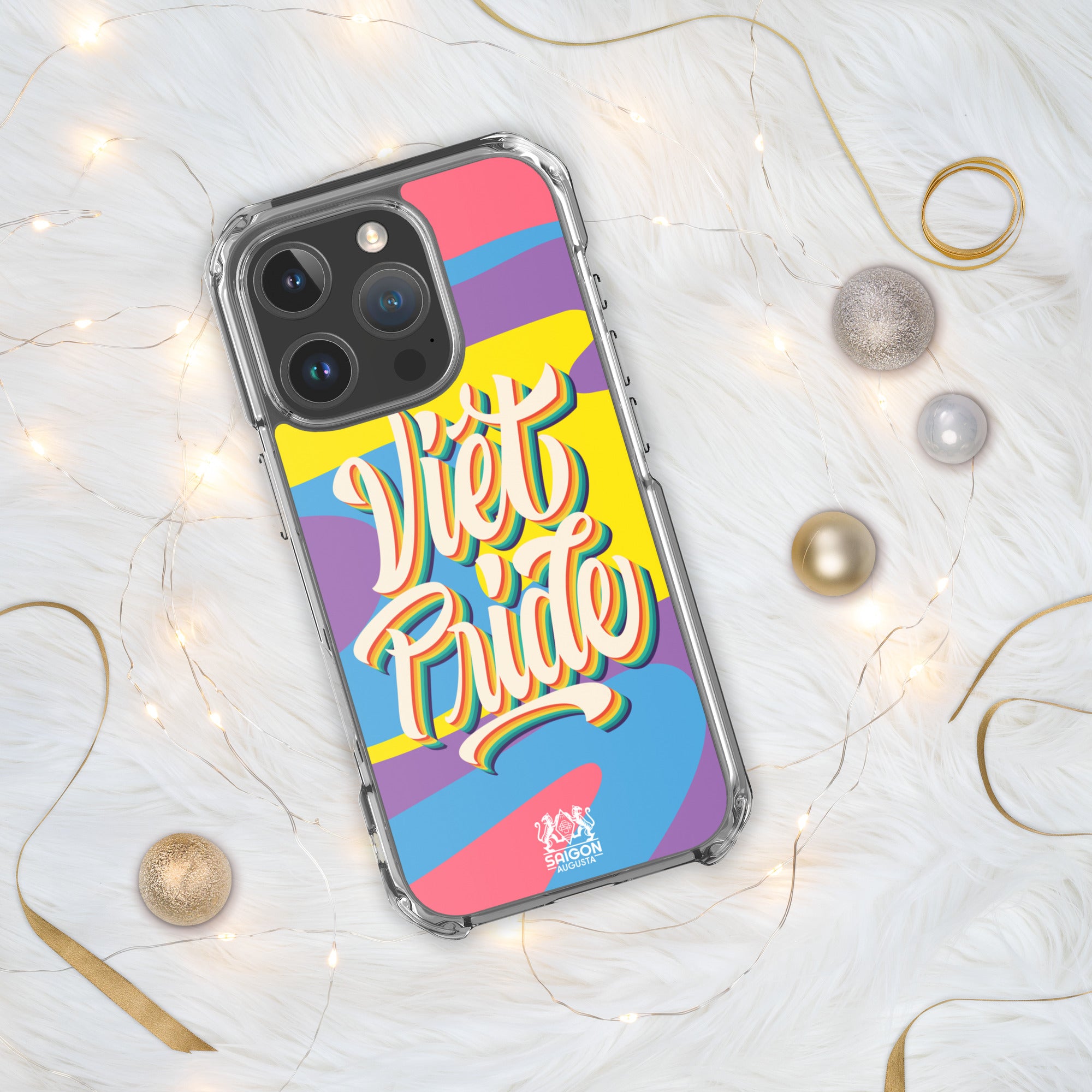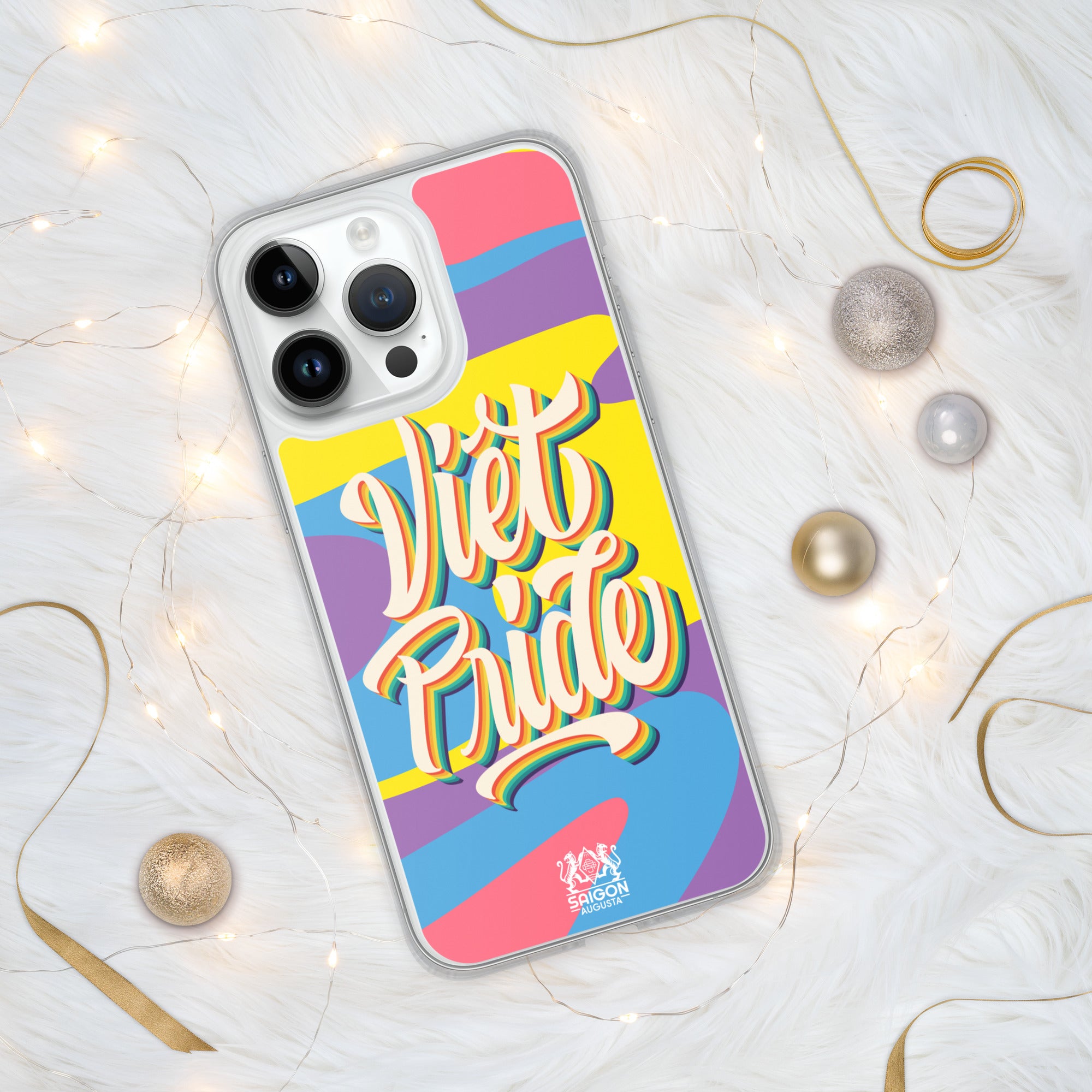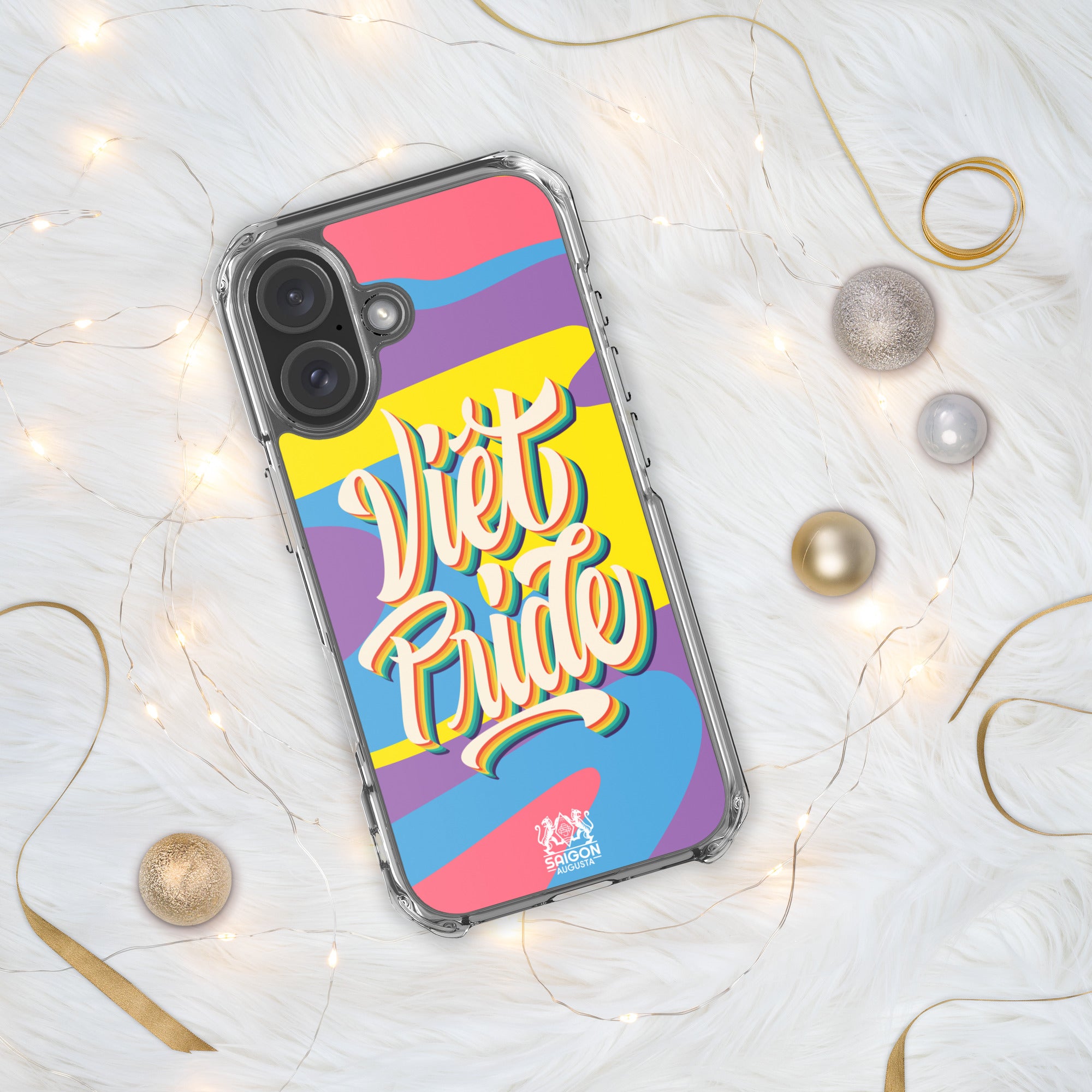 The rainbow edition of our signature design carries a bold yet simple message: be proud of who you are. With vibrant waves of color and the hand-lettered phrase "Việt Pride," this iPhone case is both a celebration of identity and a nod to heritage.